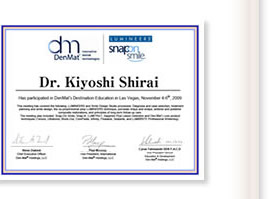 中でも院長の白井は、日本審美歯科センターより「審美歯科」と「インプラント」分野で名医認定証と感謝状が贈られるなど、経験・技術に定評があります。国内では1人しか持っていない『ルミネアーズ』の技術を指導する専門資格も取得しています。